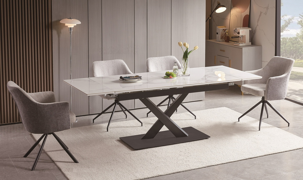 Стол 4sis Юпитер интерьерный раздвижной обеденный из керамики, цвет белый глянцевый BD-2772056